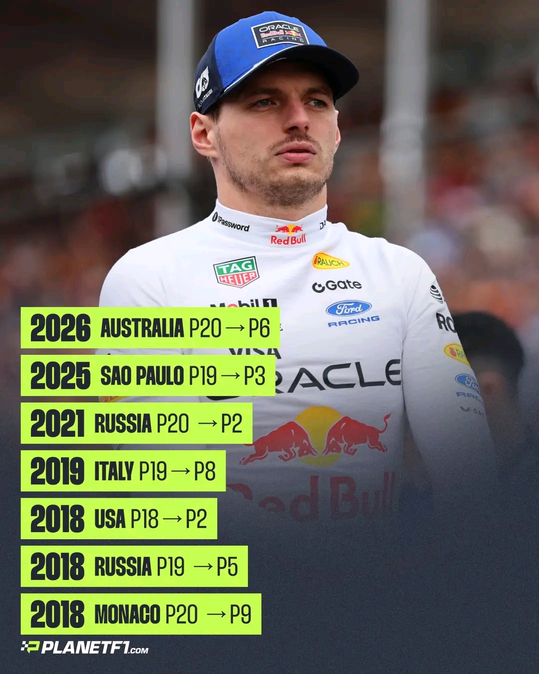 Across the last seven occasions where Max Verstappen started 18th or lower and finished the race, he has always ended inside the top ten โ meaning he secured valuable championship points each time.