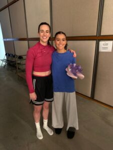 When filming wrapped, Britt was still trying to process the whirlwind day. Her father, Eric Schellhammer, asked Clark’s team if the WNBA star would be willing to take a quick photo. They agreed without hesitation. Britt assumed that would be the highlight of the encounter. Instead, Clark went a step further. After posing for a few pictures, she grabbed a marker, slipped off her sneakers, signed them, and handed them directly to Britt. According to her father, the look on Britt’s face said everything — complete disbelief and joy in one unforgettable moment.