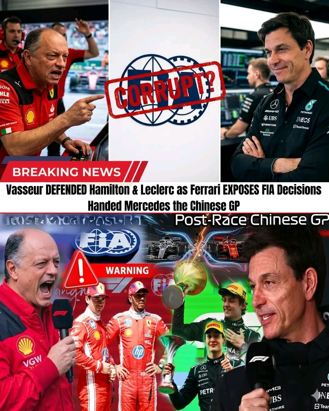 FANS LEFT STUNNED — FIA Faces Intense Scrutiny After Fred Vasseur Raises Serious Questions Following Dramatic Chinese GP Developments Involving Mercedes-AMG Petronas Formula One Team!”