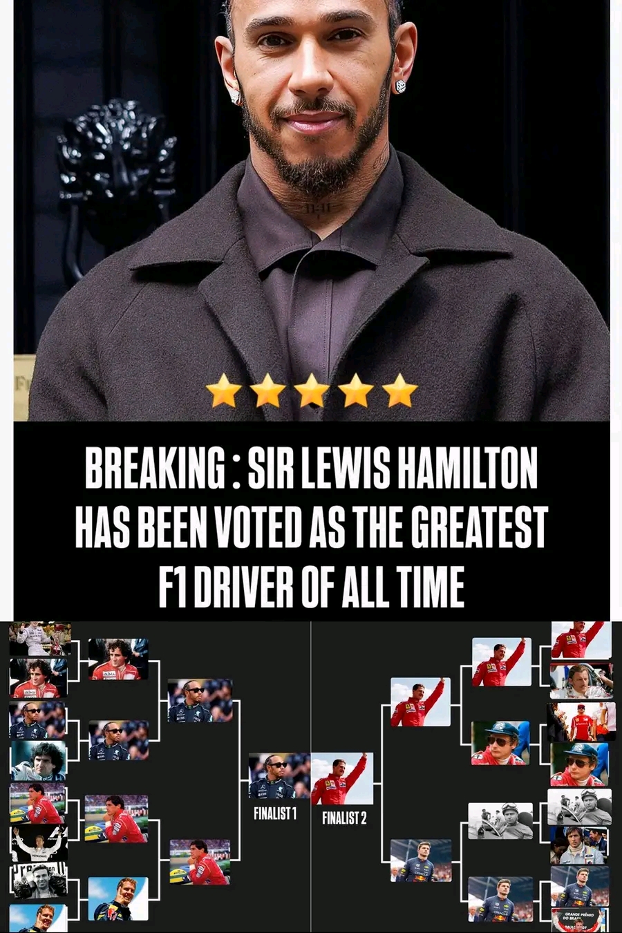In a result that has sent waves across the motorsport world, fans have officially voted Lewis Hamilton as the Greatest Formula One driver of all time, ending one of the most passionate debates in racing history.