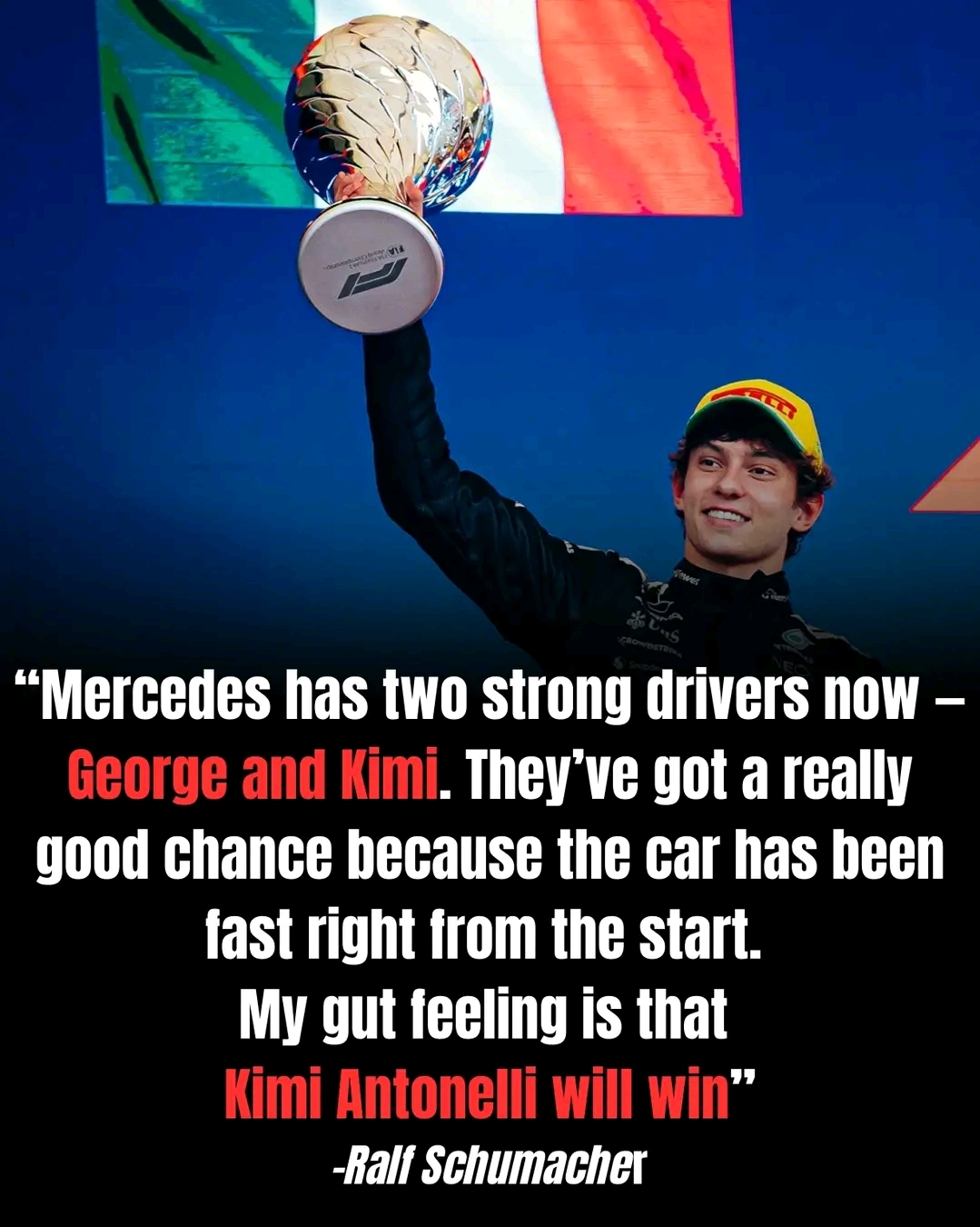 “Kimi Antonelli has everything you want in a future champion,” Schumacher said. “Speed, confidence, and incredible race awareness for someone so young.”